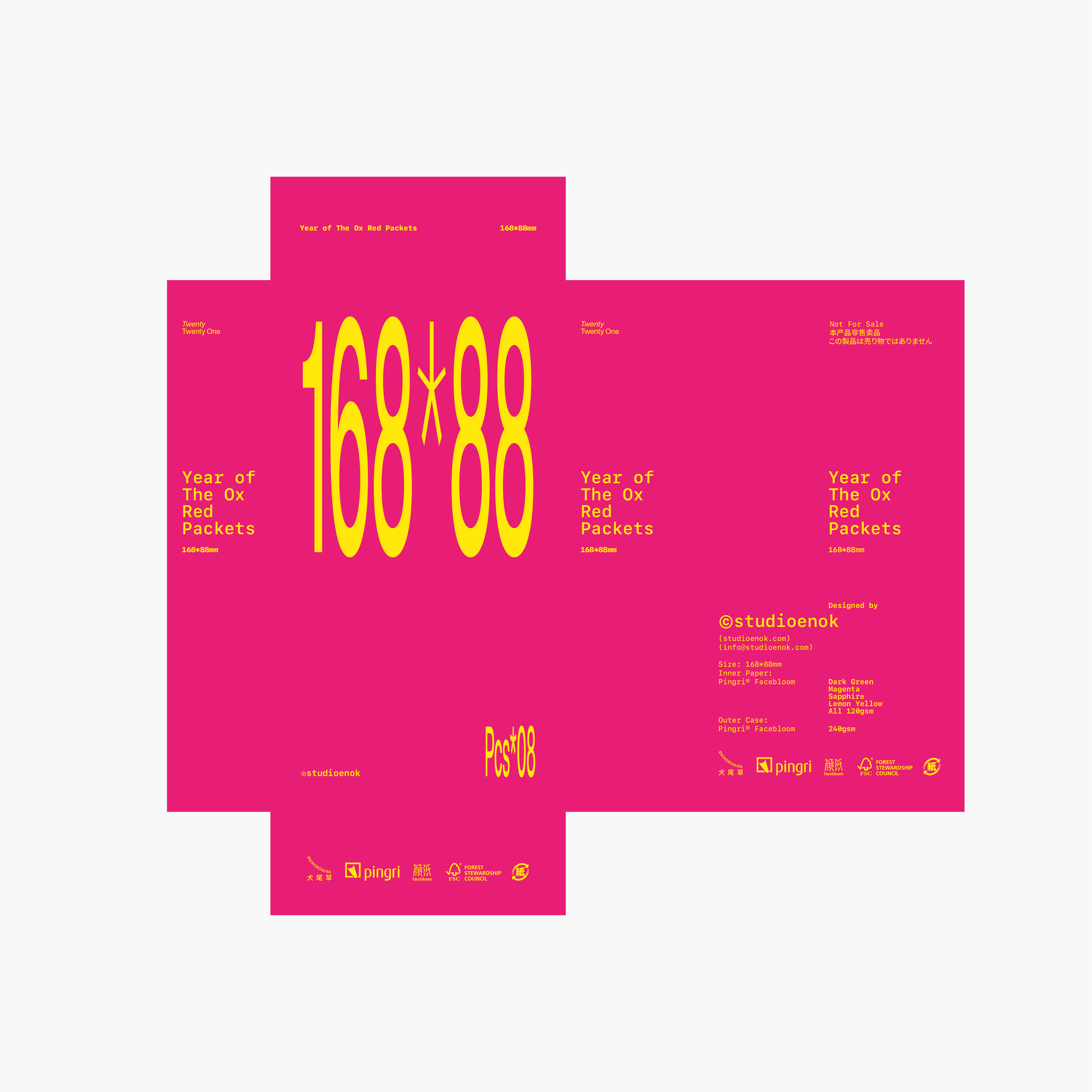 With 168 symbolizing good fortune and 88 wishing prosperity, we've creatively incorporated these auspicious Chinese numbers into the design of red packets. Following this logic, the red packets are precisely sized at 168mm x 88mm. We like to describe it as meticulously traditional yet playfully elegant, emphasizing both attention to detail and a sense of fun.