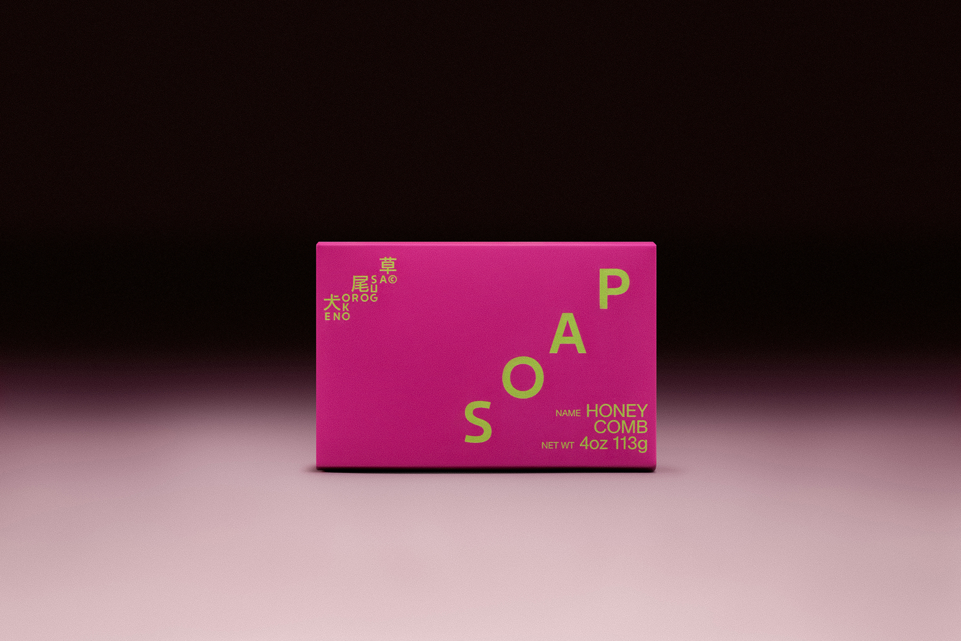 "enokorogusa" is a soap brand. The logo itself conveys the visual concept consistent with the resilient and drought-resistant nature of dogtail grass, which grows from the ground and thrives in harsh conditions.