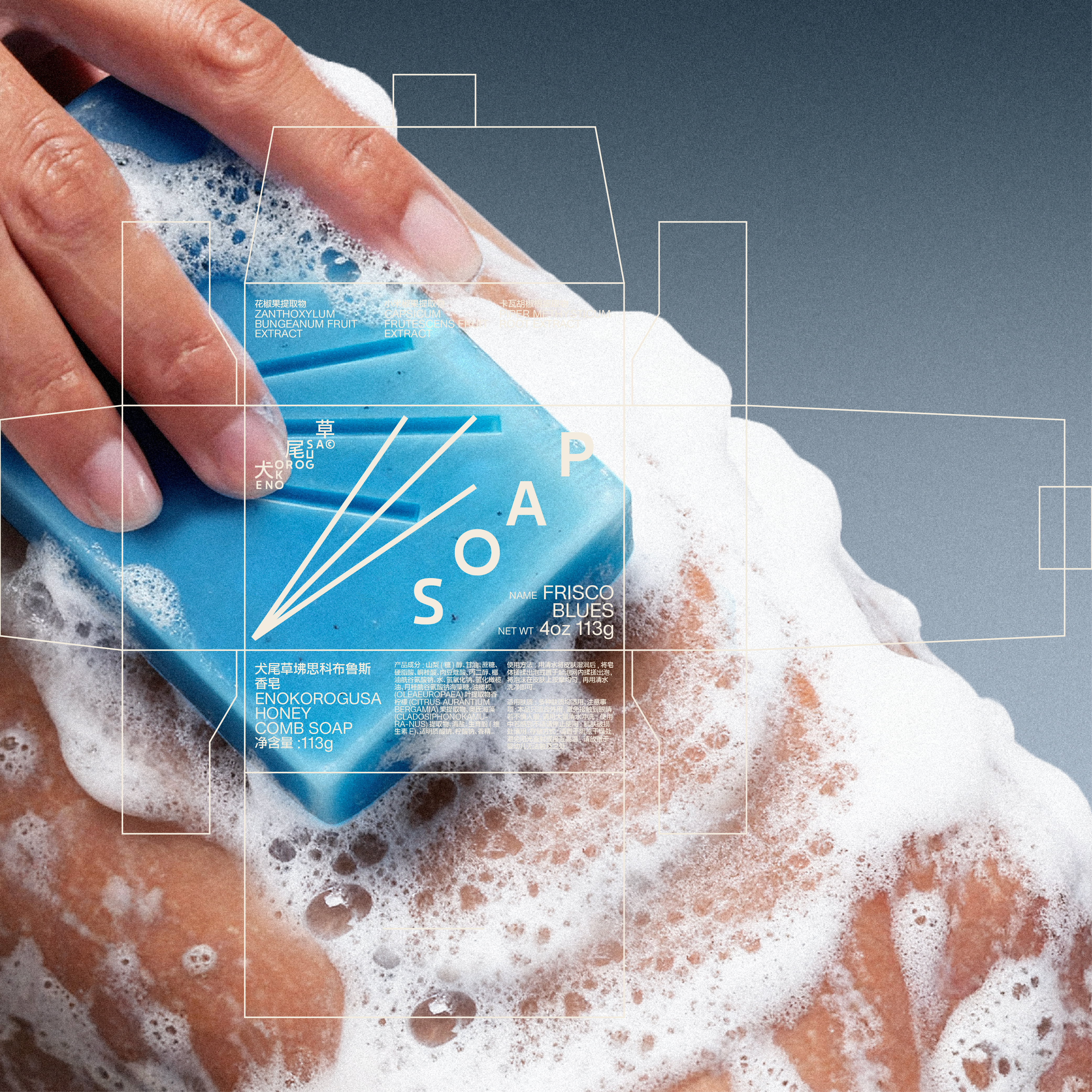 犬尾草是一个香皂品牌。标志本身传递的视觉概念与犬尾草适生性强, 耐旱耐贫瘠的属性一致, 由地而起, 由土则生。